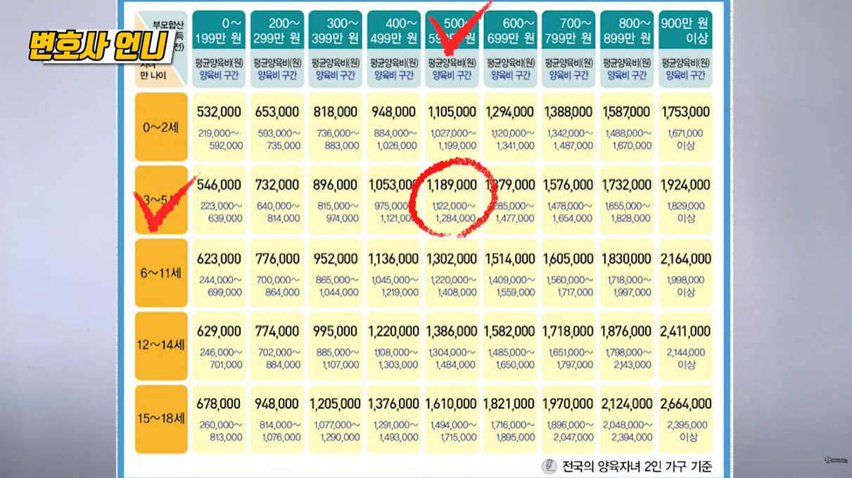 양육비 산정 기준표 섬네일